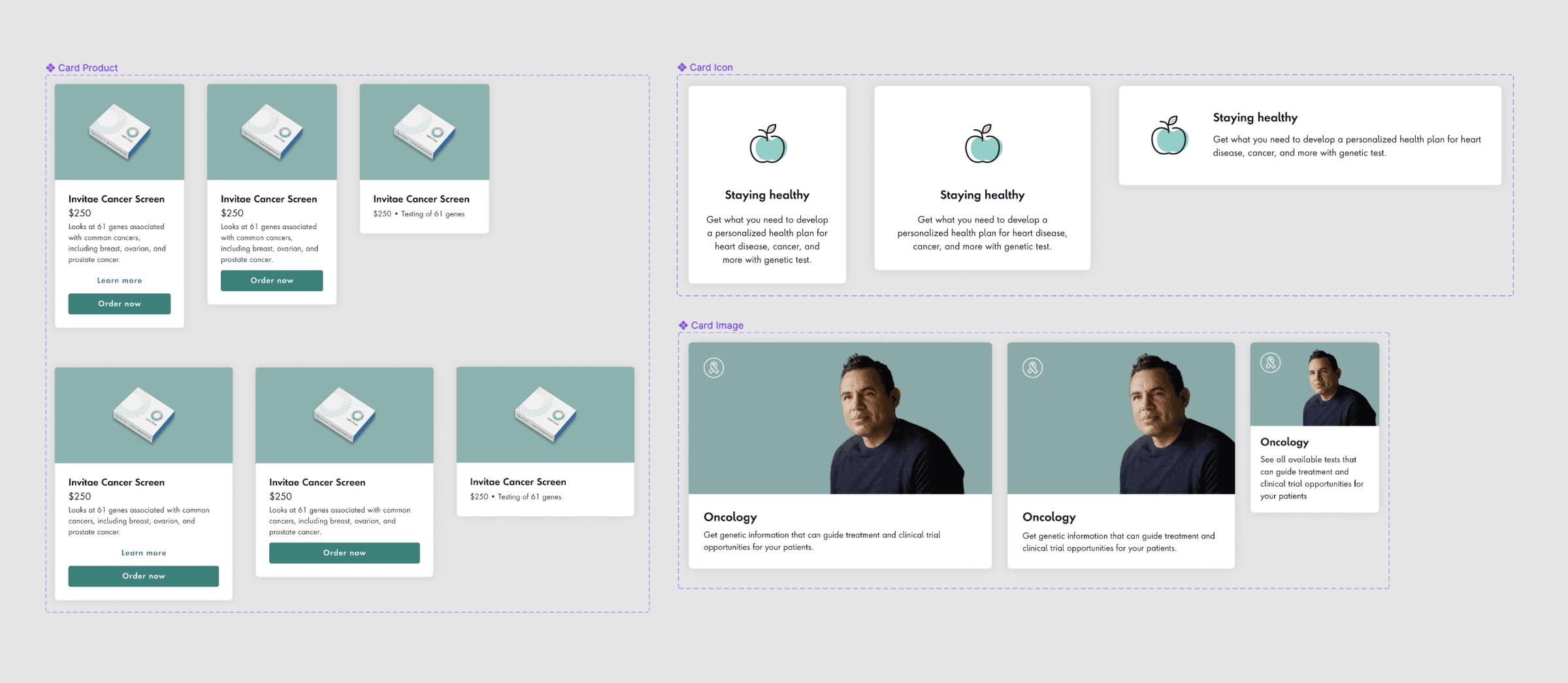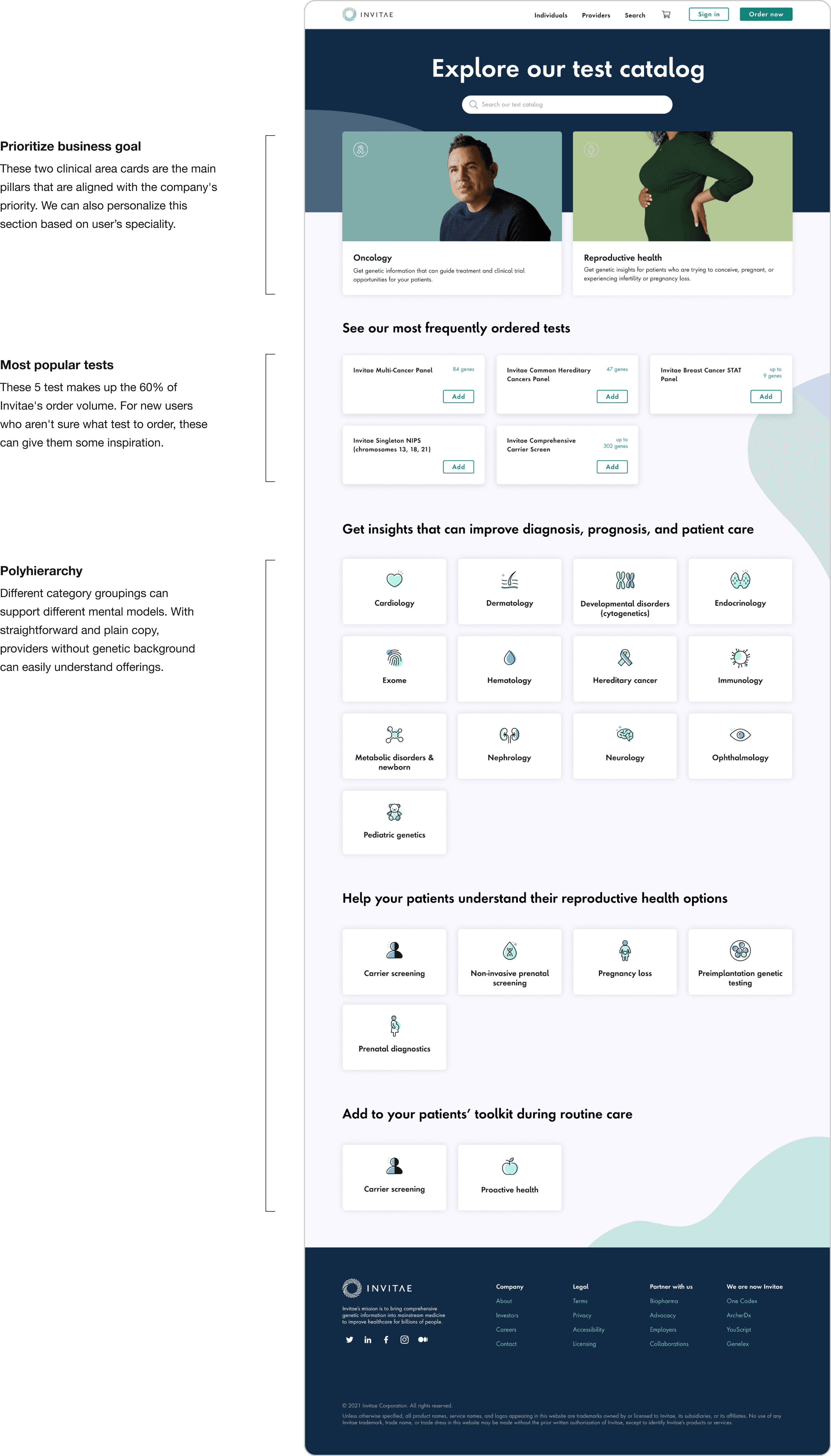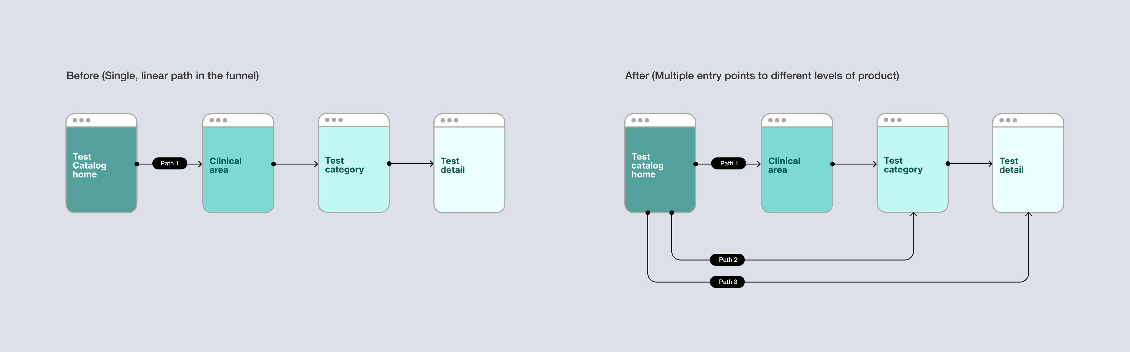 New design allows users to quickly scan all tests and select the one that's right for their patients. Key information is highlighted in each card optimized for a quick scan. We also included the product image to give more consumer polish to increase engagement.