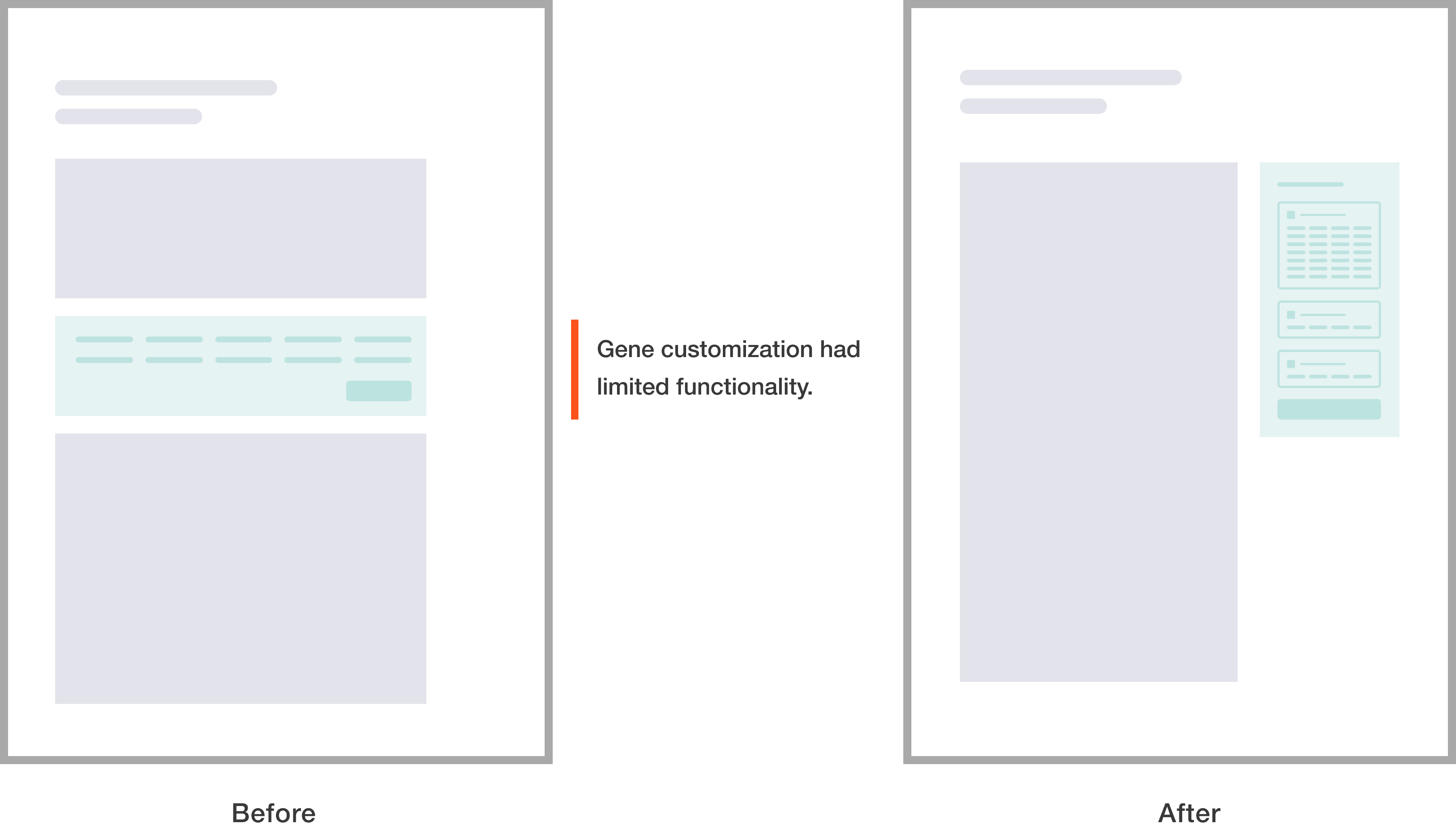 With new design, users can easily customize their test by removing certain genes. With progressive disclosure, the full list of genes appears incrementally to avoid overwhelming users with the sea of genes.