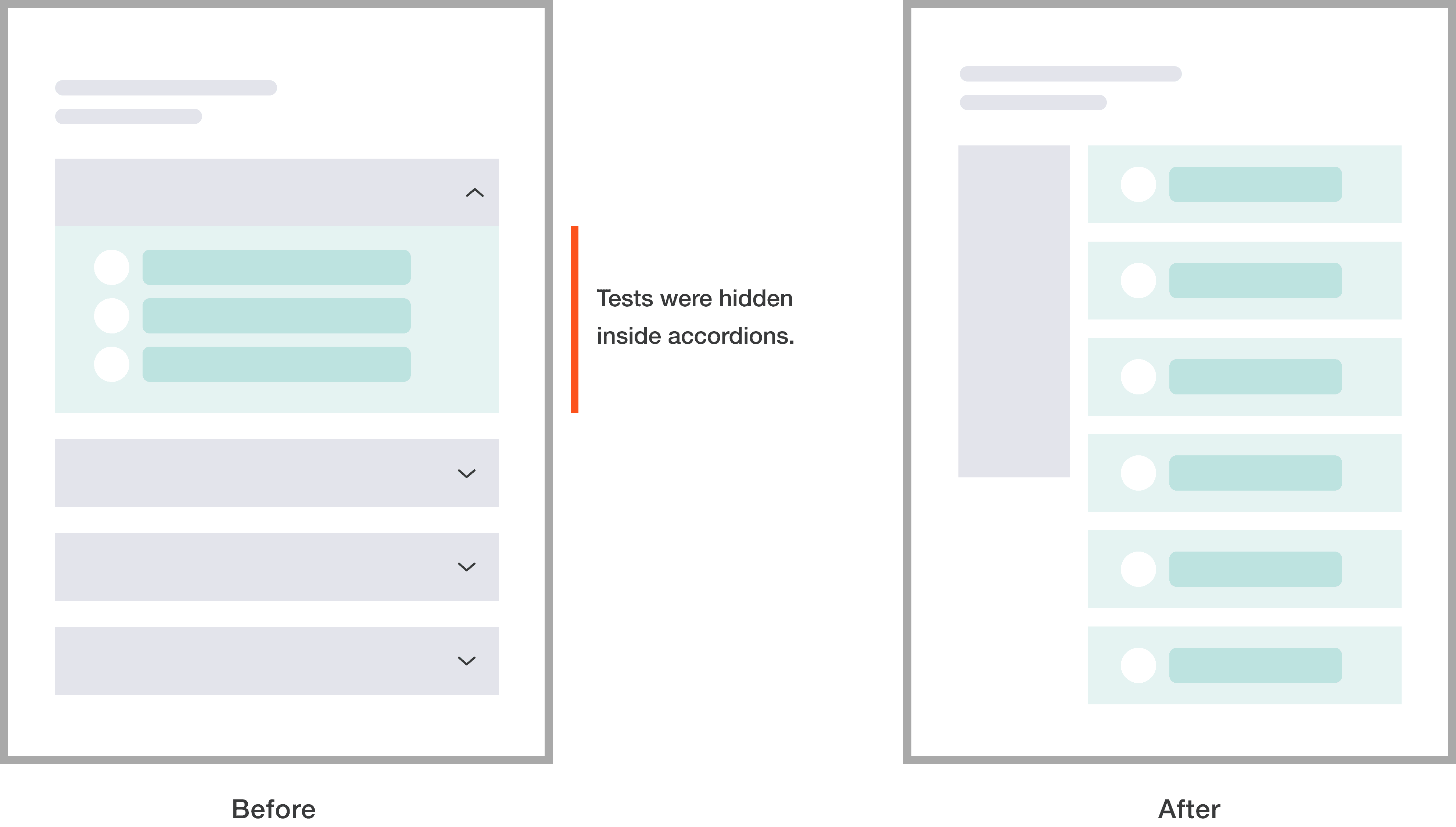 Test detail is broken into bite-sized chunks to enhance comprehension. We showed only the key summary upfront and hid additional information to help users focus only on what matters to them.