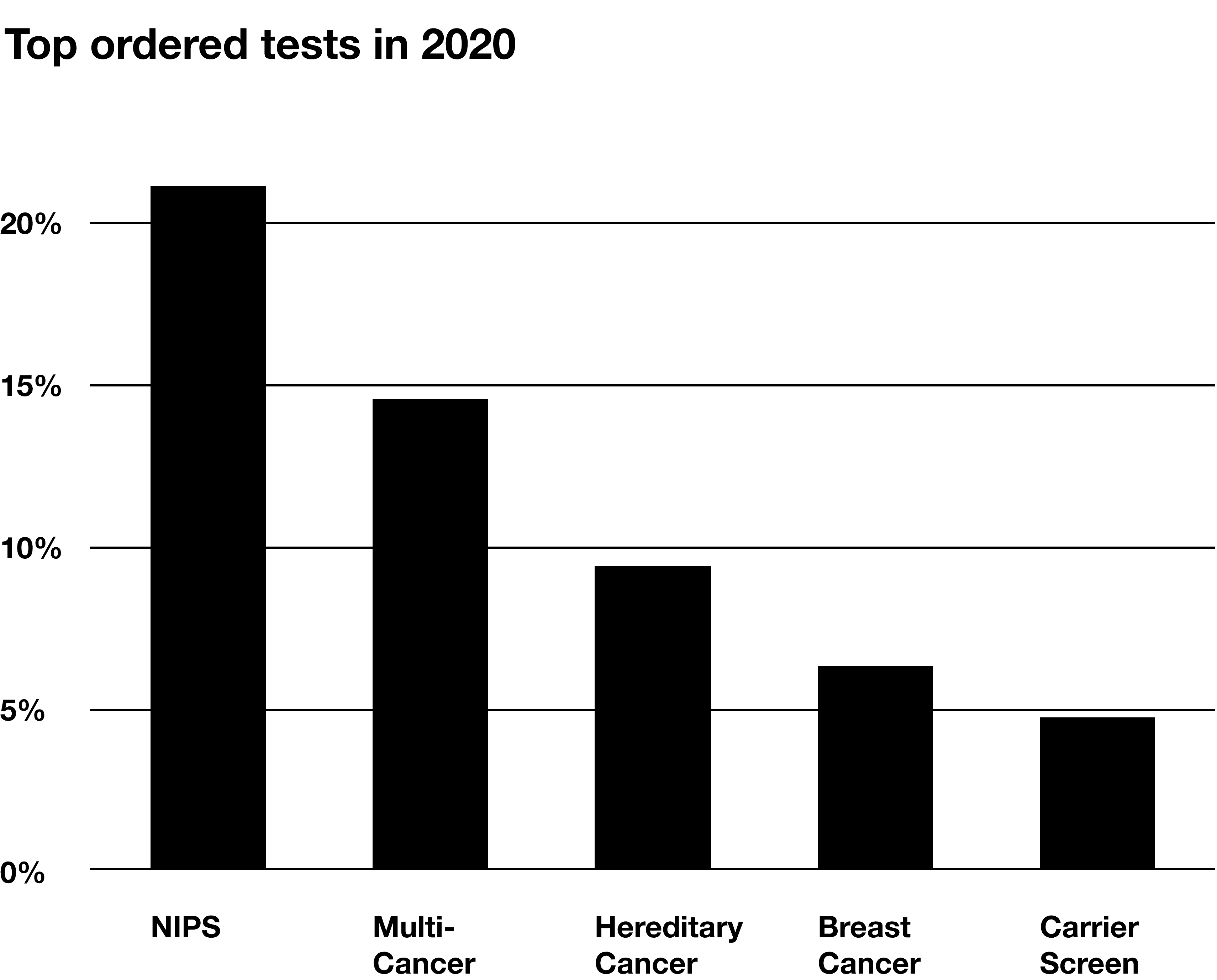 NIPS (Non-invasive prenatal screening) screens for the risk of chromosomal problems in the baby in early pregnancy, and it is the earliest way to reveal the sex of the baby. And it is the top-most ordering volume at Invitae.