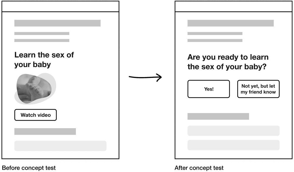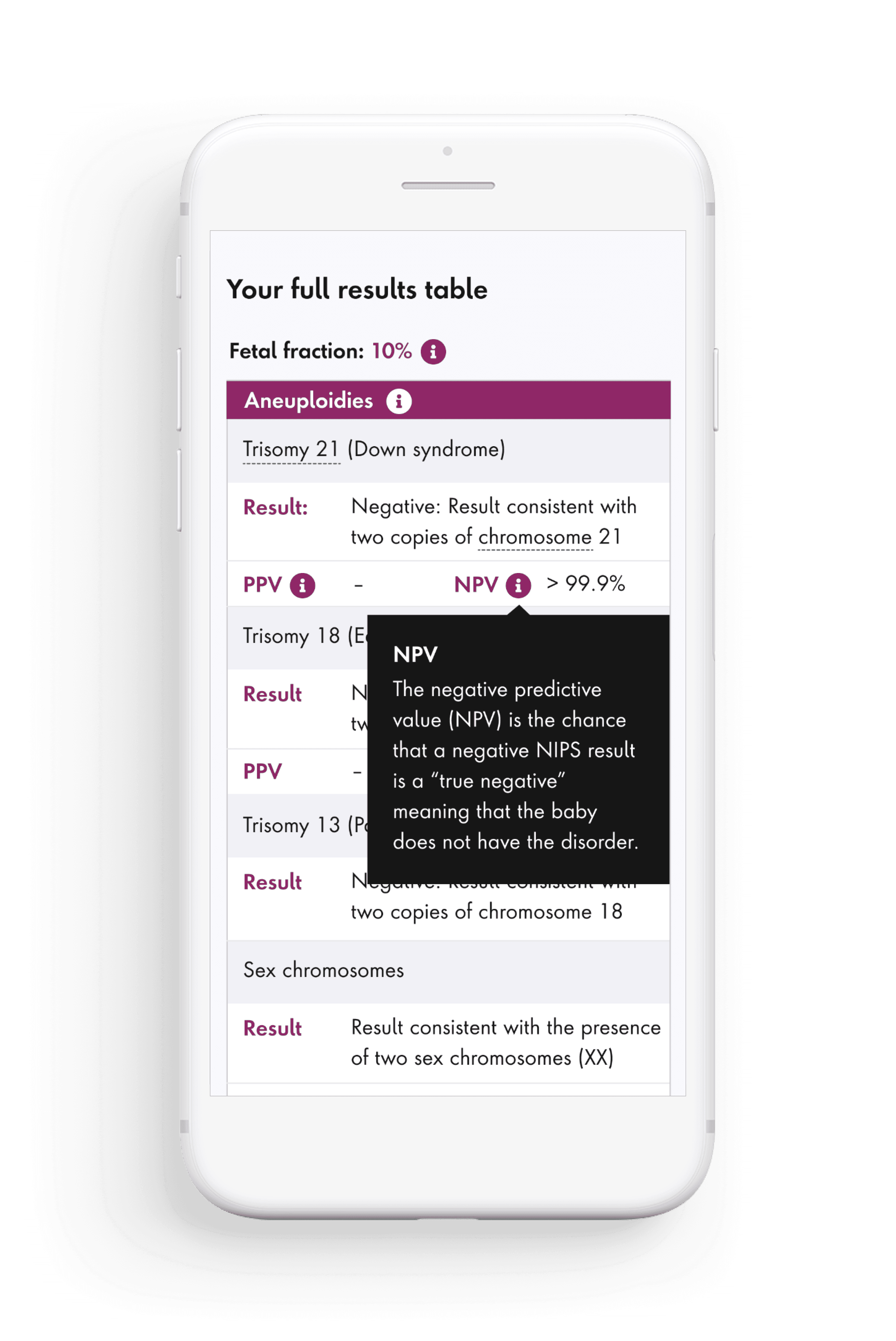 On average, only 3% of NIPS tests come back positive. However, it's these individuals who need the most empathy and support. Instead of focusing on the sex reveal feature, the design prioritizes immediate actions that patients can take to make their experience as clear and manageable as possible.